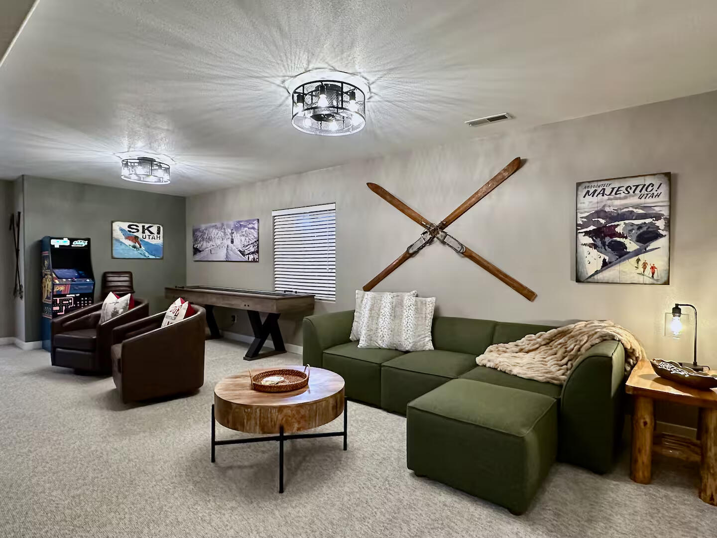 Welcome to the Beehive Basecamp! Your perfect adventure retreat. Nestled among nature’s beauty, you and your home family are sure to find tranquility and excitement at our doorstep. It's not uncommon to wake to the sight of wild deer and turkeys roaming freely.Let loose, step out and explore! Nearby you'll find thrilling mountain bike rides and serene hiking trails to the best spots for fishing and world-class skiing—all minutes away. Ideal for any large family (we have 6 beds + 6 baths) looking to connect with nature, relax, or embark on daily adventures. A fully outfitted game room will ensure your fun doesn't stop during your outdoor explorations. Nope. Ping Pong, shuffle board, and arcade games will keep the good times coming.Come and stay at the Beehive Basecamp—we know you'll love it :)